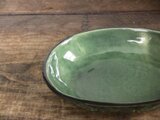 化粧泥は北海道蘭越町で採掘した白粘土を使用し、釉薬は自家製灰をブレンドした織部釉を使用。北海道の恵みと拘りが詰まったやきものです。