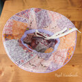 つば裏にもジャケットと共通のパッチワーク柄コットンを合わせました。