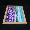 この油絵のサイズは縦210mm × 横297mmで、ナチュラルな額縁(サイズ:縦24.2cm × 横32.8cm × 厚さ1cm)に収められています。壁掛け用の金具も付属していますので、お好きな場所に手軽に飾ることができます。「天空のピンクと紫の紫陽花」は、大切な方への贈り物や特別な瞬間を彩るアートとして、自信を持ってお勧めいたします。