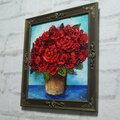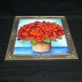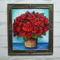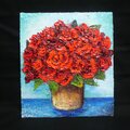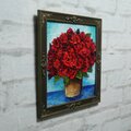 「薔薇」は、青色の背景に華やかな赤い薔薇と茶色の花瓶が映える特別な油彩作品です。このアートは、その鮮やかな色彩が見る人に強い印象を与え、洗練された雰囲気をお部屋にもたらします。美しい薔薇の花は、愛や情熱の象徴として、お客様の生活空間を一層引き立てることでしょう。