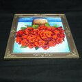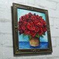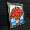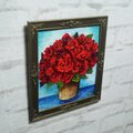 この油絵のサイズは縦272mm × 横242mmで、アンティークゴールド色+アイアンブラウン色額縁サイズは縦32.0cm × 横29.0cm × 厚さ1cm となっています。壁掛け用の金具も付属していますので、お好きな場所に手軽に飾ることができます。「薔薇」は、特別な瞬間を演出し、大切な人への贈り物としても最適なアートとして自信を持ってお勧めいたします。