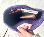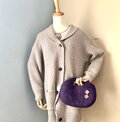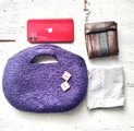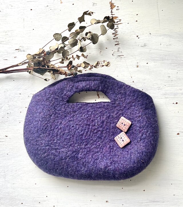 四角いポタンが大人っぽい羊毛フェルトハンドバッグ(ダークパープル ショルダー紐付き)