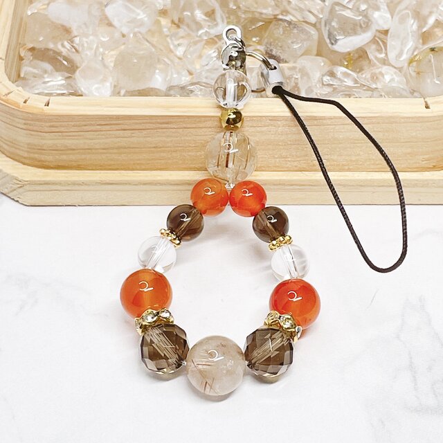 ✨再販✨【2026年丙午開運】行動力と前向きな流れを整える|ルチルクォーツ・カーネリアン 天然石ストラップNo.833S