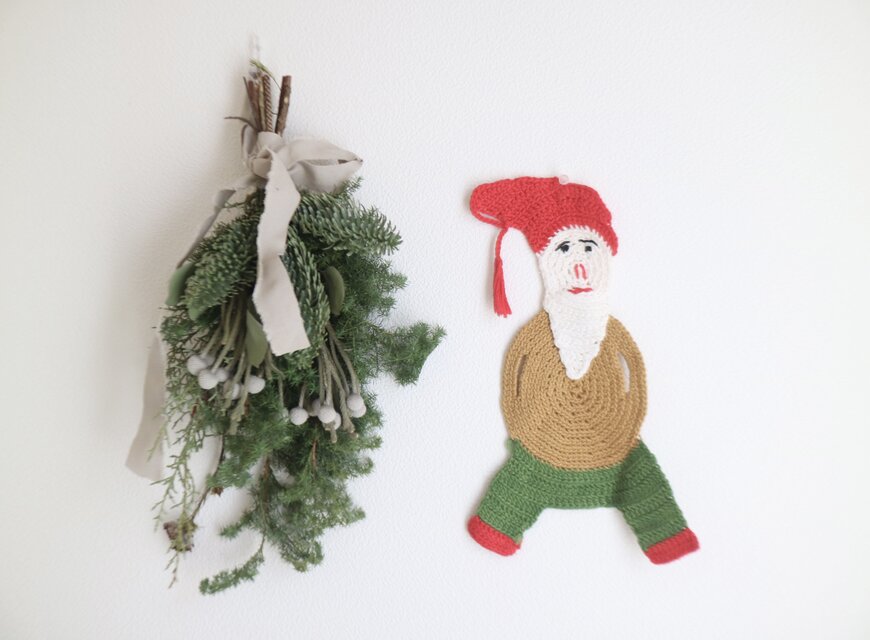 北欧ではよく見かける、かぎ針編みの素朴なサンタ。
