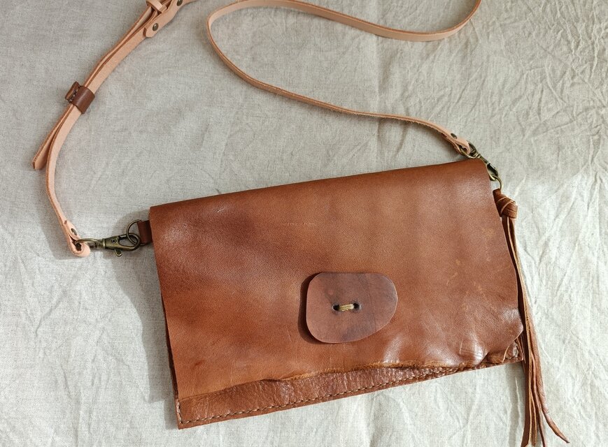 一目惚れのバッグでした。 実物は思っていた通り、革の色合いとか何とも言えない素敵なお品です。 また、サイズ感もちょうど良くて、軽くて、大切に使わせていただきます。 この度は、ありがとうございました。