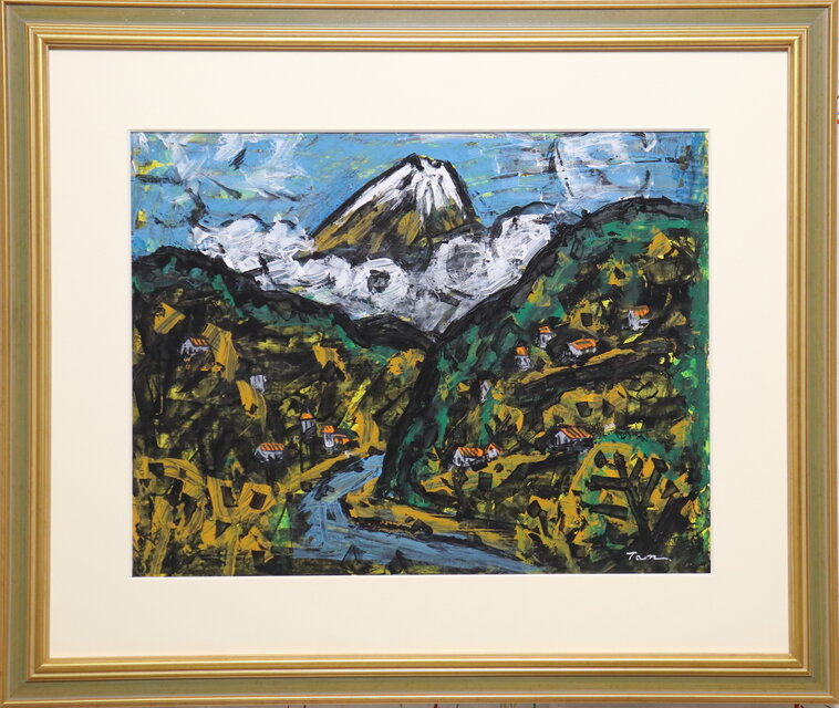 「富 士」(NO.2529) 6号F ケント紙にアクリル絵の具 送料無料 安本太ん 画像をクリックすると全面画像になります