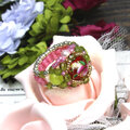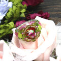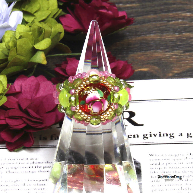 (新作)姫バラ転写玉リッチリング〔転写玉/スワロパール/チェコビーズ ビーズリング〕《ビーズアクセサリー》