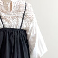 コットン&レース切り替えチュニックブラウス オフホワイト (受注制作)
