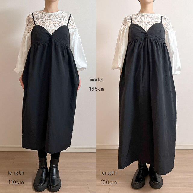 選べるサイズ・レングス ナイロンキャミソールワンピース(ブラック)<受注制作>