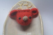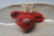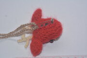 ナイロン混モヘア毛糸とウール100%毛糸を使用して編み上げ 目玉は手芸ボンドで止めています