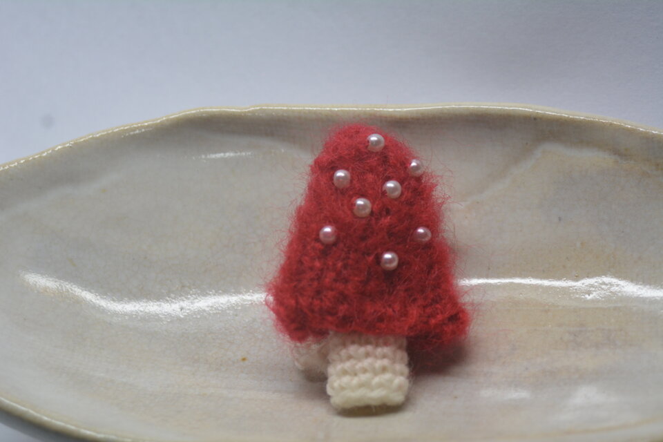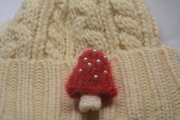 ナイロン混モヘア毛糸と ウール100%毛糸を使用して パールビーズを縫い付けています