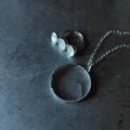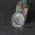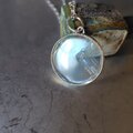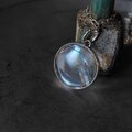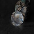 きらりと輝く虹を閉じ込めたレンズのようなクォーツをシルバーネックレスに仕立てました。