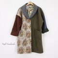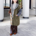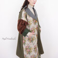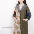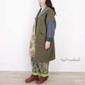 カーキウールとゴブラン織りのミックスショールカラーコート