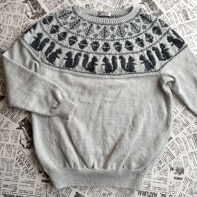 モヘアの美しいグラデーションの波がとても素適な丸ヨークセーターが届きました。上質な毛糸で丁寧に編みこまれていてとても軽いです。猛暑の夏を元気に乗り越えて、ステキなセーターに袖を通せる日を楽しみにしております^^どうもありがとうございました。