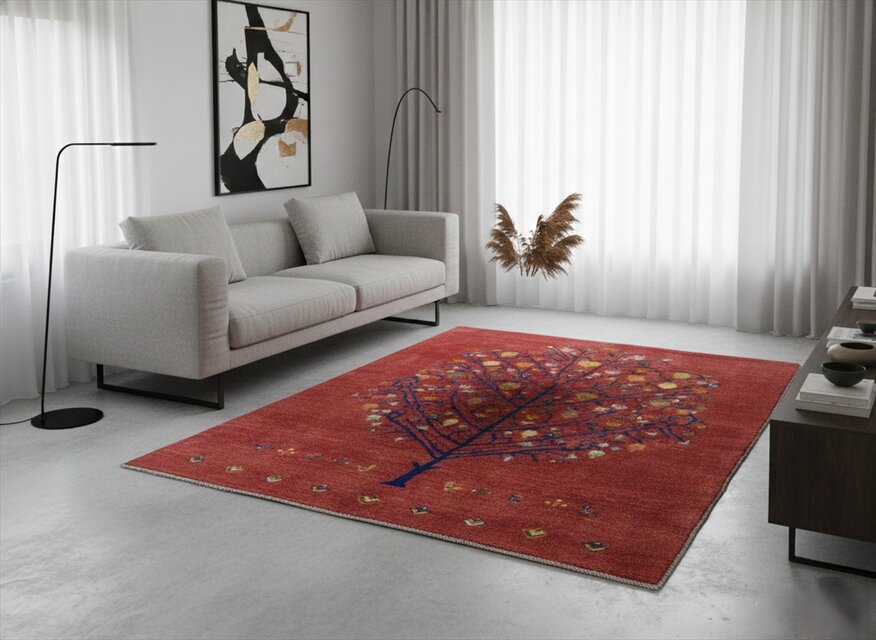 商品名: ペルシャ ギャッベ カシュガイ ザクロの木 茜色 RJ11735