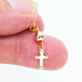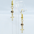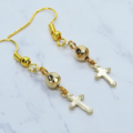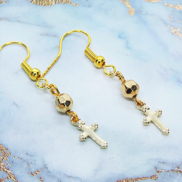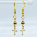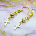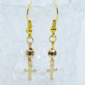 ゴールドカラー 小さなロザリオとメタルビーズのコンパクトな可愛いピアス