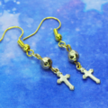 コンパクトなロザリオチャームにメタルビーズを組み合わせた小さいけどキラキラ輝く大人可愛いピアスです