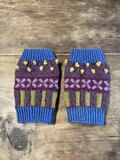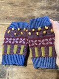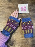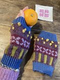 手編みのハンドウォーマー|カラフルな柄編み|一点もの|指先が自由な冬小物|冷えとり|ミトン|手袋|古着好き|模様編み