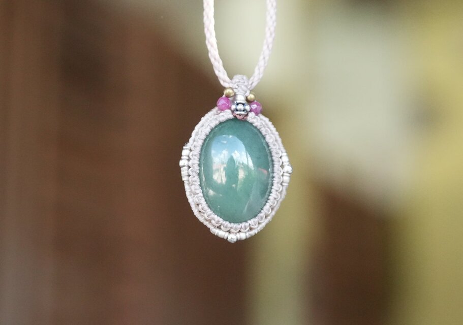 深い緑ミャンマーJede★翡翠★ マクラメネックレス1952