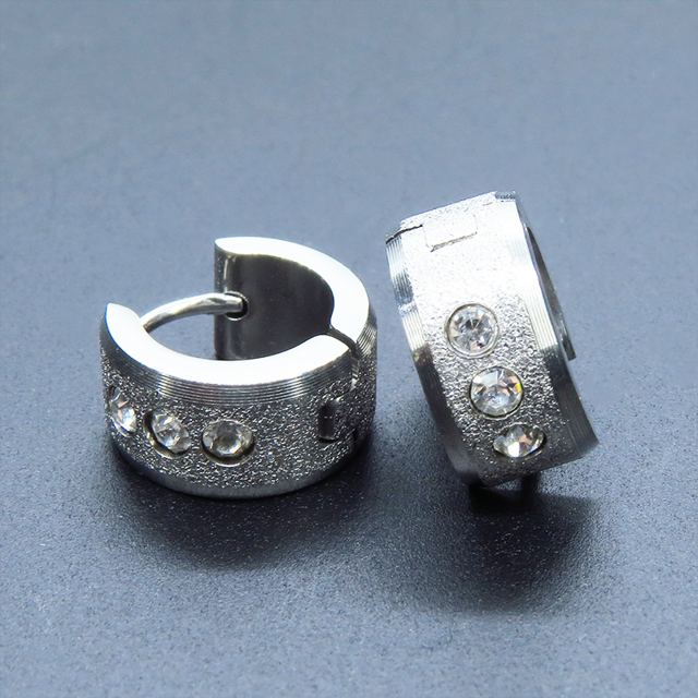 シルバーカラー サージカルステンレス フープピアス リングピアス クリスタルガラス メンズ レディース
