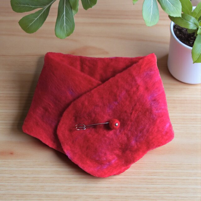 羊毛フェルトマフラー S レッドMIX(リバーシブル)