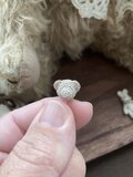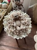 刺繍糸1本取りで編む、マイクロクロッシェ・テディベアと花々のリースブローチ(5.5cm)