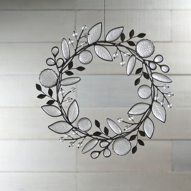 前回の赤いリースの色違いとなる 透明なガラスを使った白いリースです。