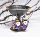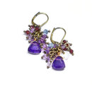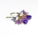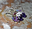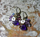 ザンビア産アメジストとたわわなフローライト&ガーネット、アクアマリン、白蝶貝の小花のピアス