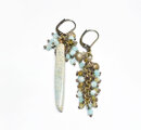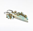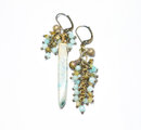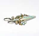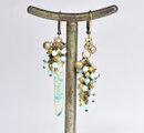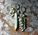 氷柱ジャスパーとたわわなアマゾナイト&トルマリン、民族鈴を繋いだアンシメトリーピアスです。