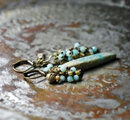 ジャスパーの柔らかな色に、oldメタルの退廃美が楽しめるロングピアスです。