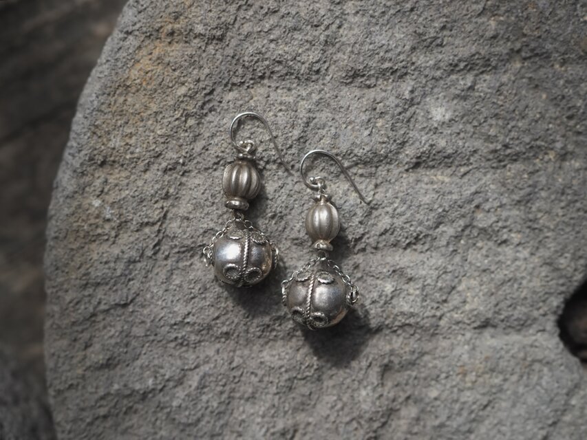 アフガニスタンのオールドシルバーを繋いだピアス