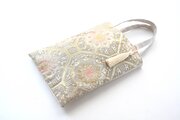 西陣織の老舗 服部織物製 蜀江文に雲取り・花唐草模様の上質なシルク帯で製作したミニサブバッグです。