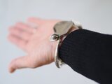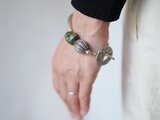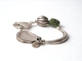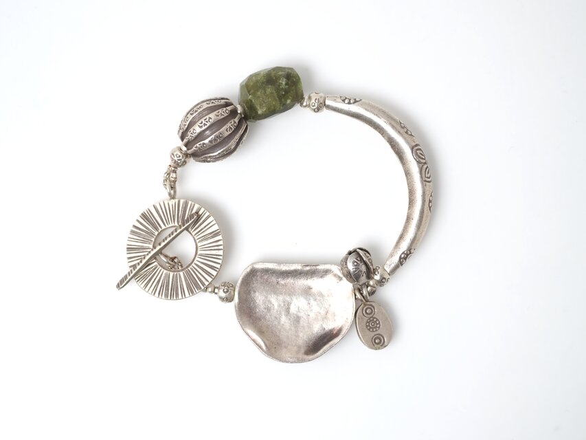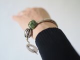 柔らかなグリーンの大粒翡翠と共に、存在感のあるブレスレットに仕立てました。