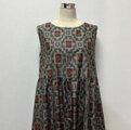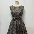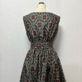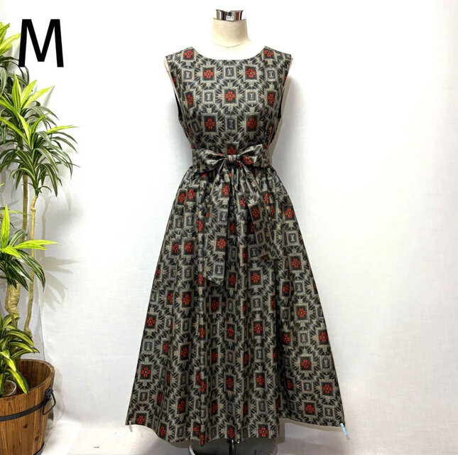 四角の中の赤い小花も可愛くポイントです。上品で華やかなワンピースに、仕上がりました。