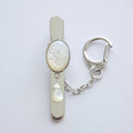 優しいホワイトカラーとシェルらしい柔らかな光沢があり、見る角度によってうっすらとシラーが見られる上品なカボションです。