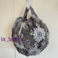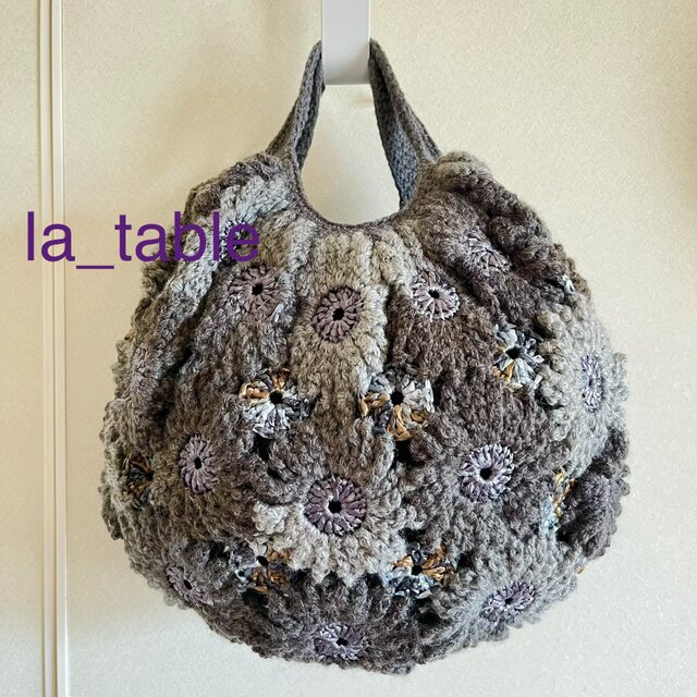 フラワーモチーフをたくさん繋いで、バッグに仕立てました。