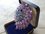 1950-60年代ヴィンテージ、約73×53㎜のおおぶりの華やかなアレキサンドライトGlassいっぱいのブローチです。