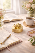 朝の光が差し込む机の上で、
