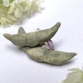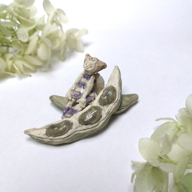 豆や羽根、衣装の一部分に薄く透明釉を施しているので、その部分は少し光沢があります。
