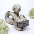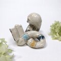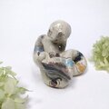 本や衣装、身体の一部に薄く透明釉を施しているので、その部分は少し光沢があります。