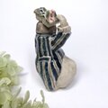 本や衣装、身体の一部に薄く透明釉を施しているので、その部分は少し光沢があります。