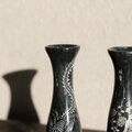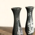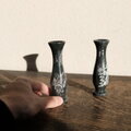 岩場に花◆龍と漢字。中国産 天然石の小さな花瓶2個セット 壺 オニキス ビンテージ シノワズリ チャイナレトロ インテリア