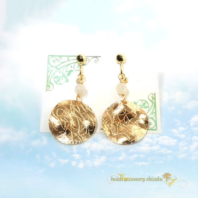 やわらかな月の光をひと粒、耳元に添えたようなイヤリングです。