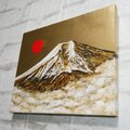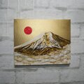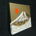 「黄金富士」は、その名の通り富士山を黄金色で描いた特別な作品です。背景全体に施された金色は、力強いエネルギーと神聖さを与え、見る人に深い感動をもたらします。風水で言われる通り、金色や黄色の絵画は金運を呼び寄せるとされ、多くの富裕層が実践している強力な法則が体現された一品です。