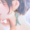 フープには、水辺のきらめきを表すしずく形のガラスビーズと、