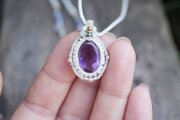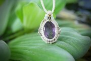 宝石★紫水晶★ファセットカット アメジスト マクラメネックレス 1875
