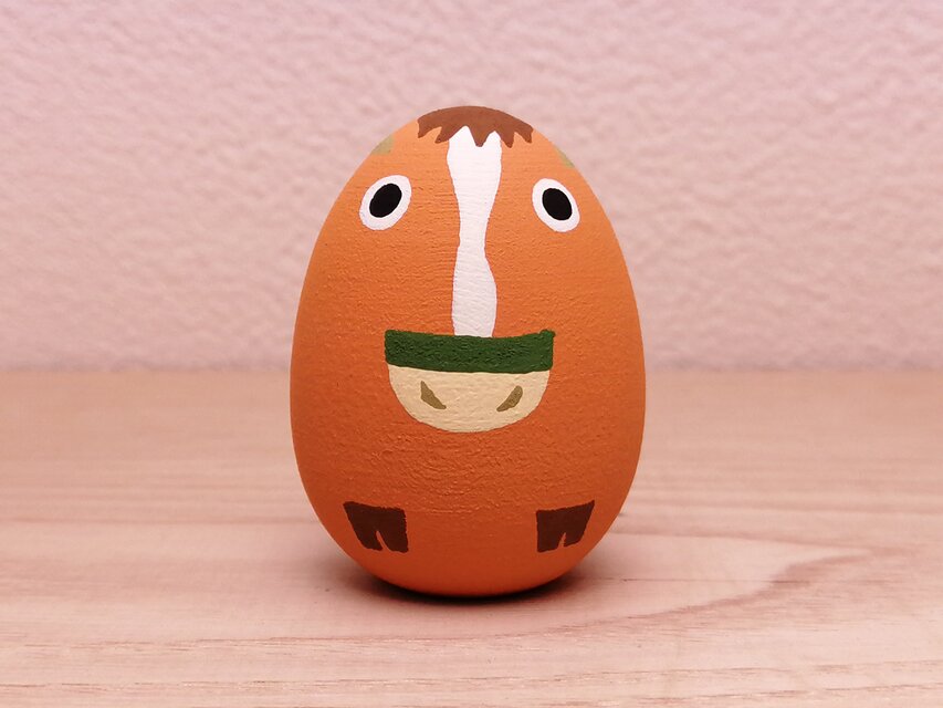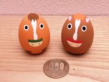 削り出した木にアクリル絵の具で絵付けしてあります。
