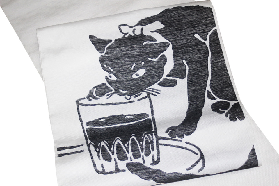 麻絹なごや帯 吾輩は猫であるの初版本の扉絵をモチーフにしました。