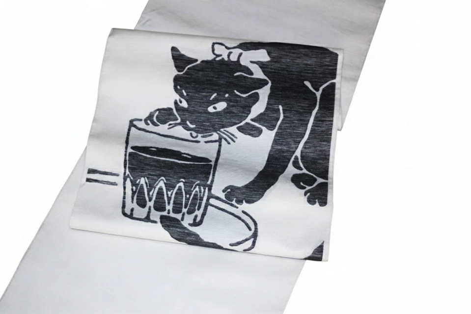 明治の文藝を背中に纏う。伝説の装幀が、西陣織で蘇る。 夏目漱石の不朽の名作『吾輩は猫である』。その初版本(明治38年刊)の扉絵を飾った橋口五葉によるモダンな猫のデザインを、京都・西陣の緻密な織技法で再現しました。