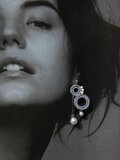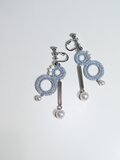 編みモチーフやシルキーパール、メタルパーツなどをバランスよく組み合わせた耳飾りです。シルバーラメとホワイトでまとめたカラーはすっきりと、コーディネートの邪魔をしないので使いやすいです。軽量なので耳たぶに負担が少ないのも嬉しいポイントです。